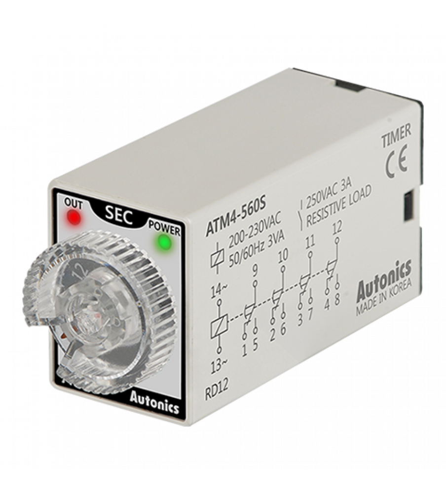 Miniature Analog Timer, 4c, 220VAC 50/60 Hz, 60 Sec