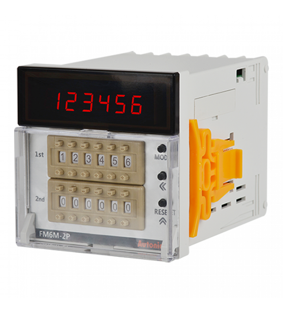 Measuring Counter, W72xH72mm, 6-Digit, LED, 2 Presets(Stage Setting), 2 Relay & 2 NPN Outputs, 100~240 VAC 50/60 Hz
