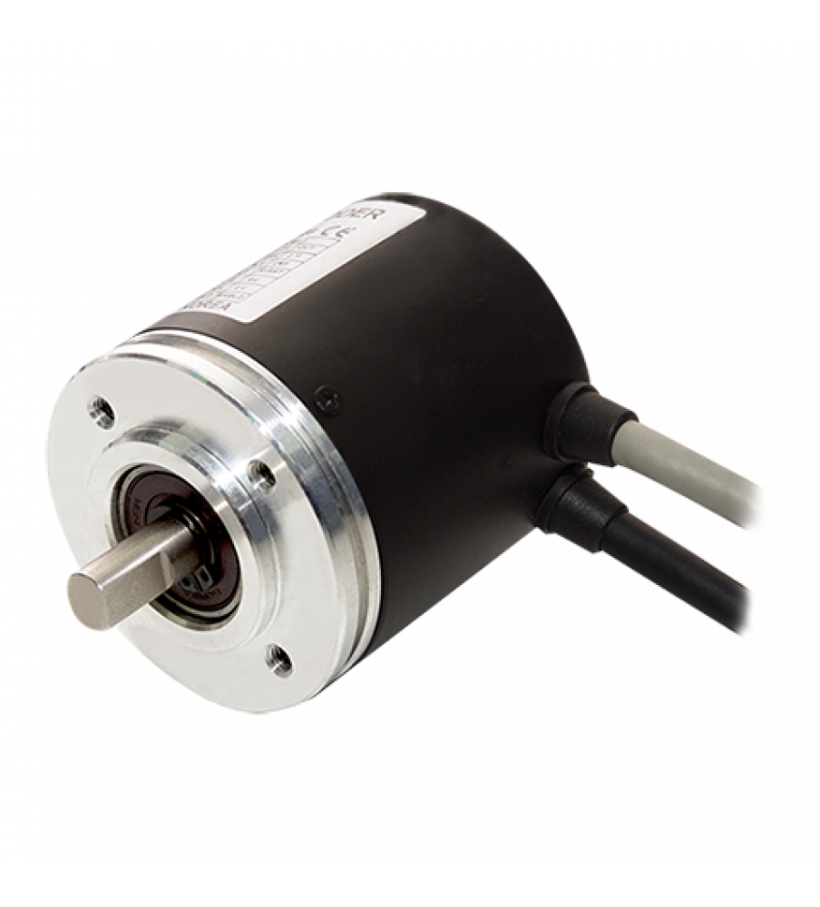 Encoder,Multi-turn Absolute, 50mm Body, 8mm Shaft, 10 bit per 1 rotation, 13 bit per 8192 rotations, Binary code, NPN NO, Side outgoing cable, 12-24 VDC