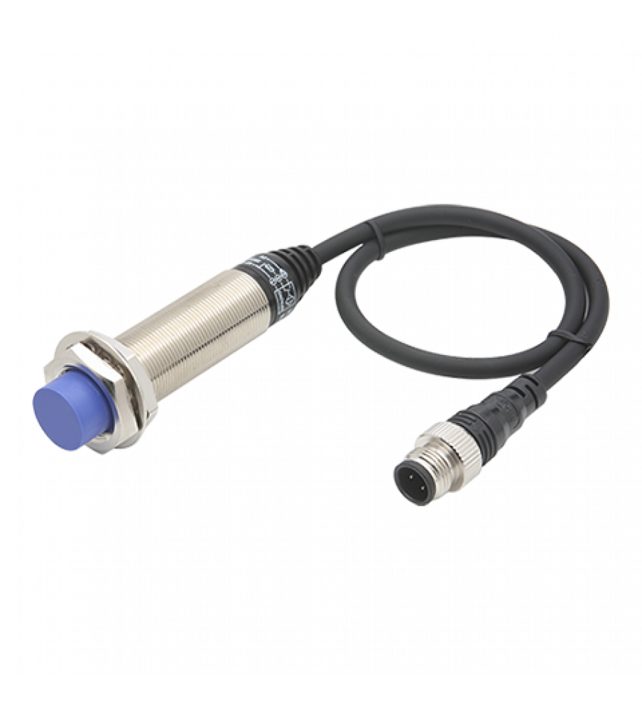 Sensor, Inductive Prox, 18mm Round Long, Non Shielded, 14mm Sensing, PNP, NO, 3 Wire, Cable&Connector, 10-30 VDC