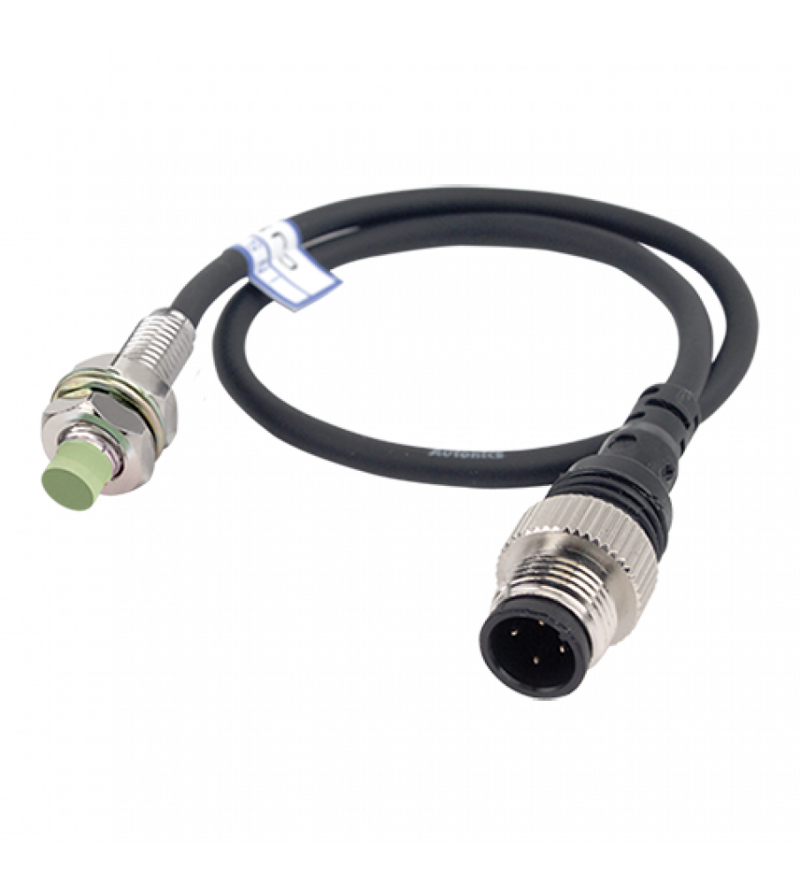 Sensor, Inductive Prox, 8mm Round, 2mm Sensing, Non Shielded, NPN, NO, 3 Wire, Cable&Connector, 10-30 VDC