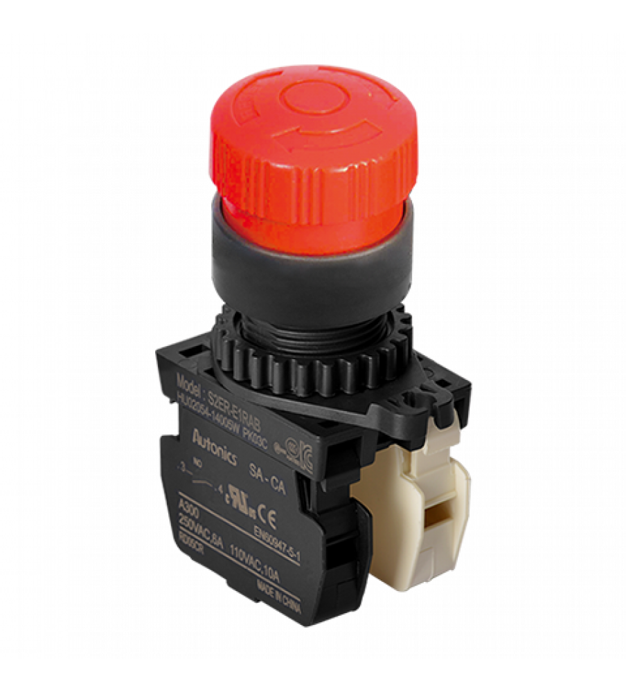 Emergency Stops ?22/25, RED, Haed ?30(L), 1 Normal Open, 1 Normal Close, 110VAC/10A,220VAC/5A