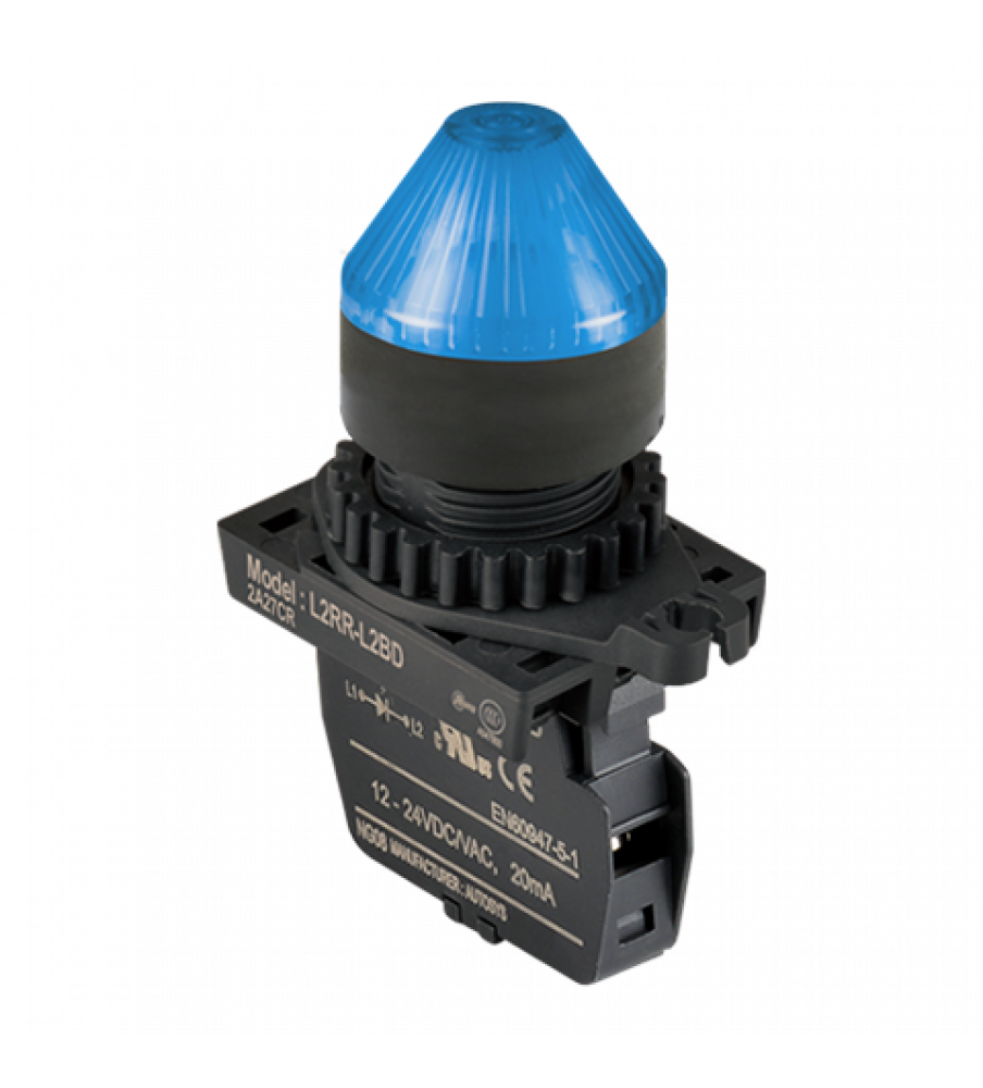 Pilot Lamp ?22/25, Blue, Horn Head, LED 12-30VDC/AC