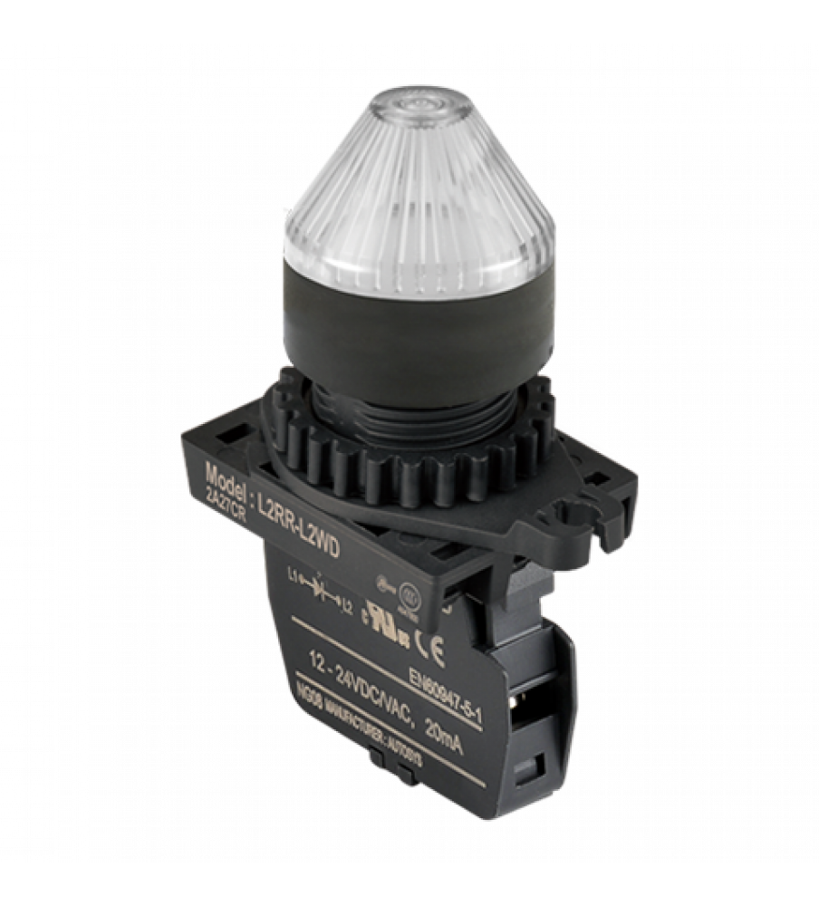 Pilot Lamp ?22/25, White, Horn Head, LED 100-220VAC
