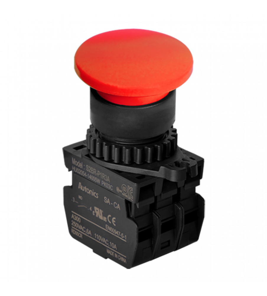 Start Push Button, Auto Spring Return, ?22/25, Red, 3 Normal Open, 110VAC/10A,220VAC/5A