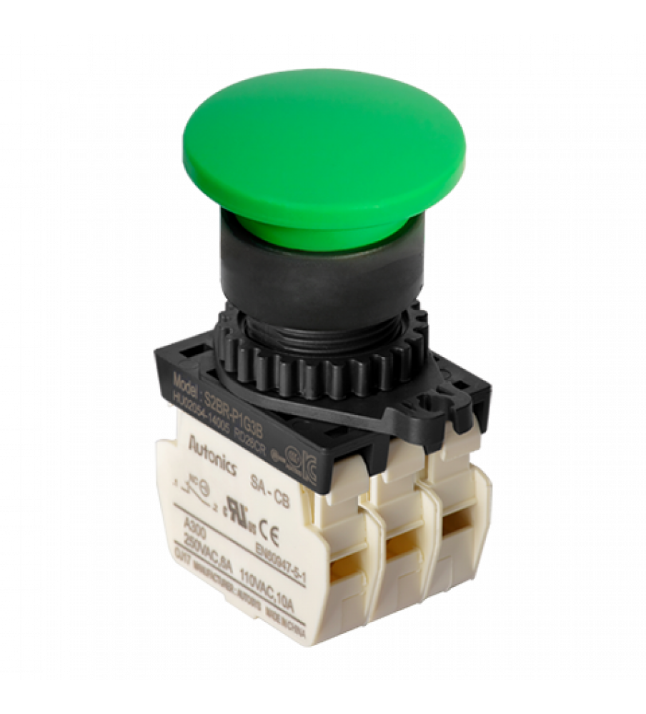 Start Push Button, Auto Spring Return, ?22/25, Green, 3 Normal Close, 110VAC/10A,220VAC/5A