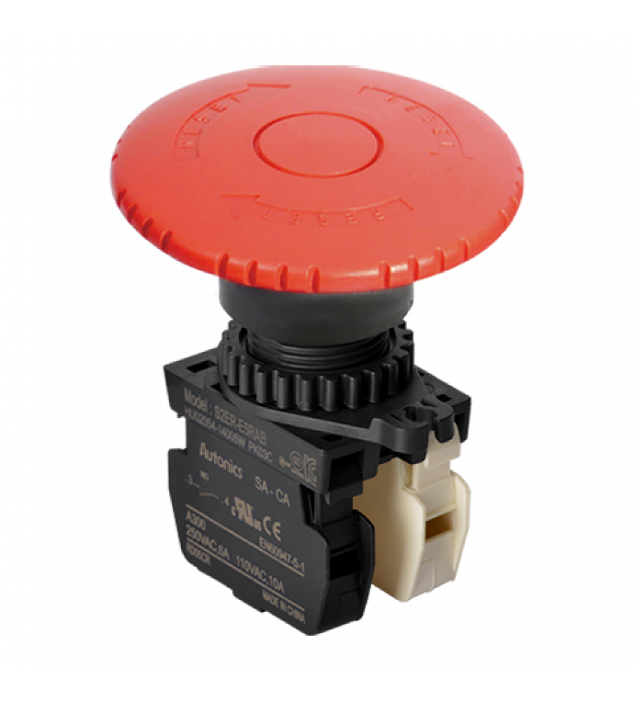 Emergency Stops ?22/25, RED, Head ?60, 1 Normal Open, 1 Normal Close, Multi Stack, 110VAC/10A,220VAC/5A