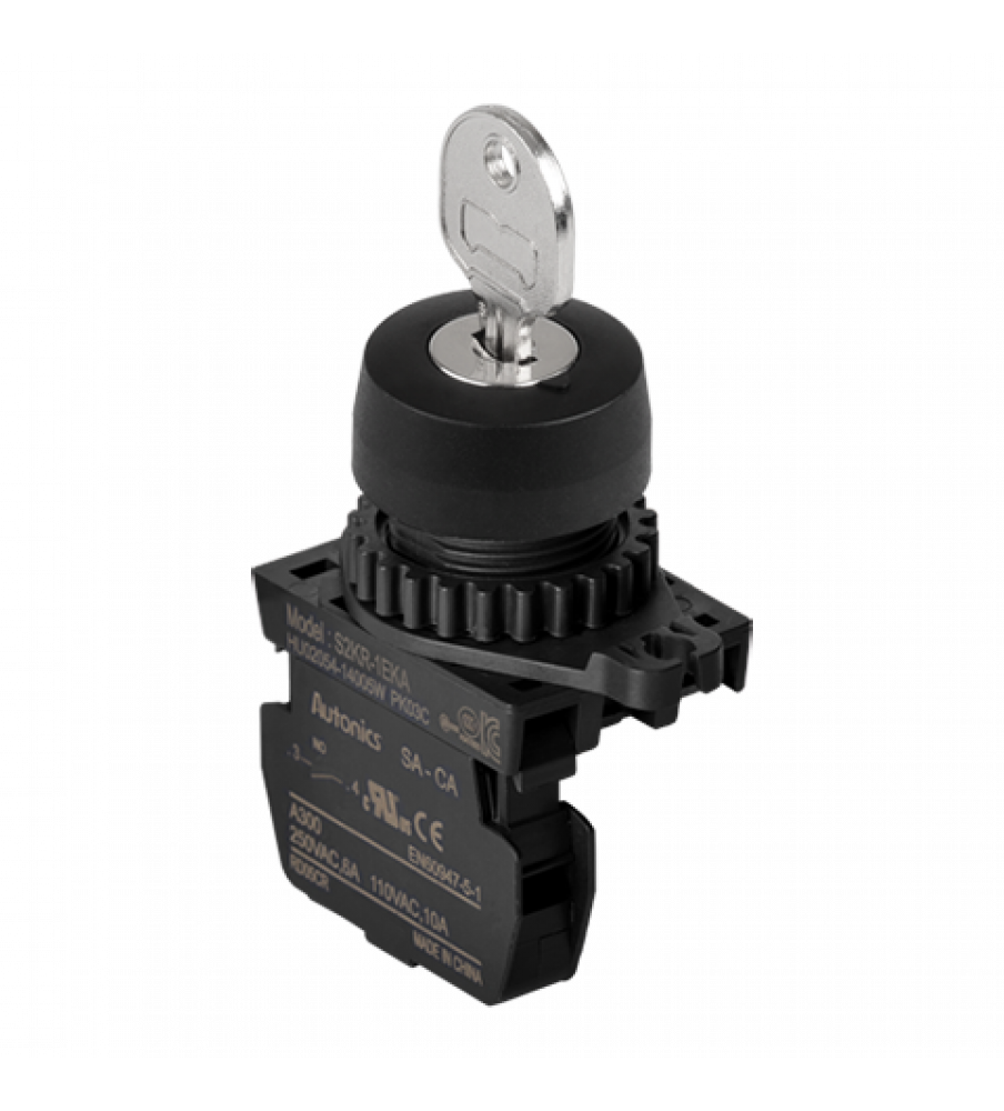 Key Selector, Non-Flush, ?22/25, 2 Positions Maintained, Center + Right Key Withdarw Postion, Black, Normal Open, Singular Type,110VAC/10A,220VAC/5A