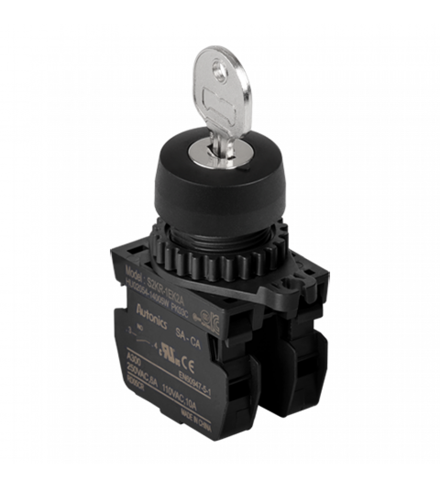 Key Selector, Non-Flush, ?22/25, 3 Positions Spring Return, Center Key Withdarw Postion, Black, Normal Open, Modular Stack,110VAC/10A,220VAC/5A