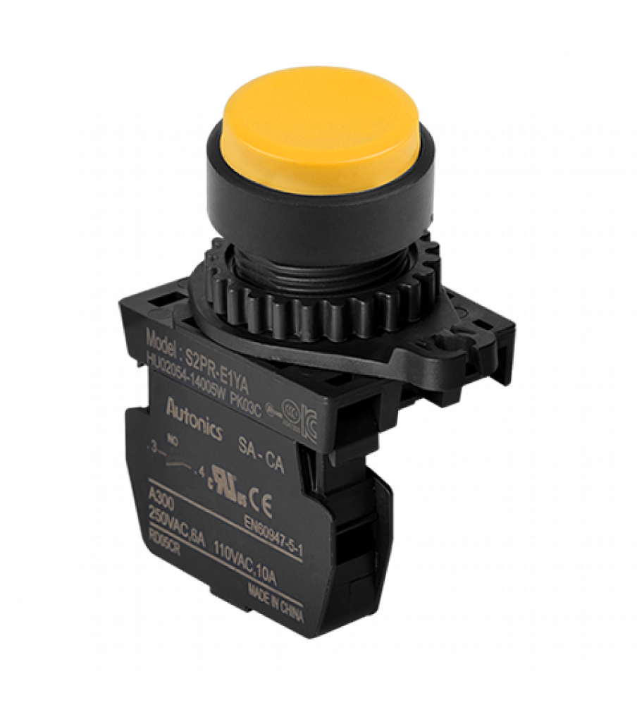 Non-Illuminated Push Button (Non-Flush), ?22/25, Raised Button, Yellos, Normal Open, Modular Type,110VAC/10A,220VAC/5A