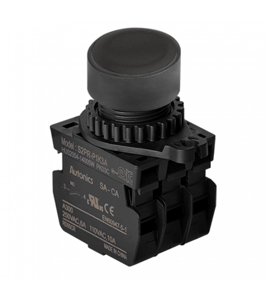 Non-Illuminated Push Button (Non-Flush), ?22/25, Black, 3 Normal Open, 110VAC/10A,220VAC/5A