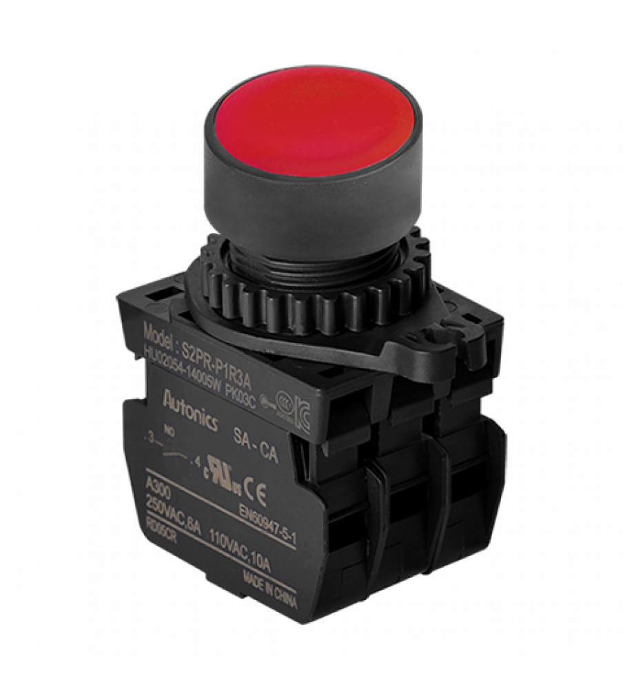 Non-Illuminated Push Button (Non-Flush), ?22/25, Red, 3 Normal Open, 110VAC/10A,220VAC/5A
