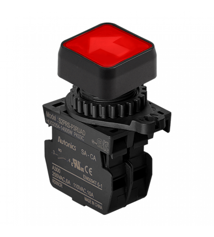 Square Type Push Button (Flush/Illuminated), ?22/25, Red, Normal Open, Modular Type, LED 100-220VAC, Arrow Mark Up/Down