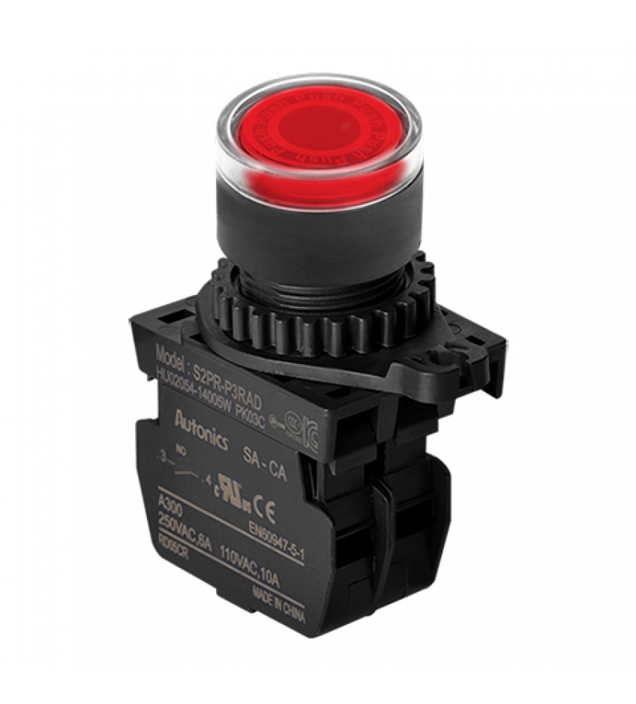 Illuminated Push Button (Non-Flush), ?22/25, Red, Normal Open, LED 100-220VAC