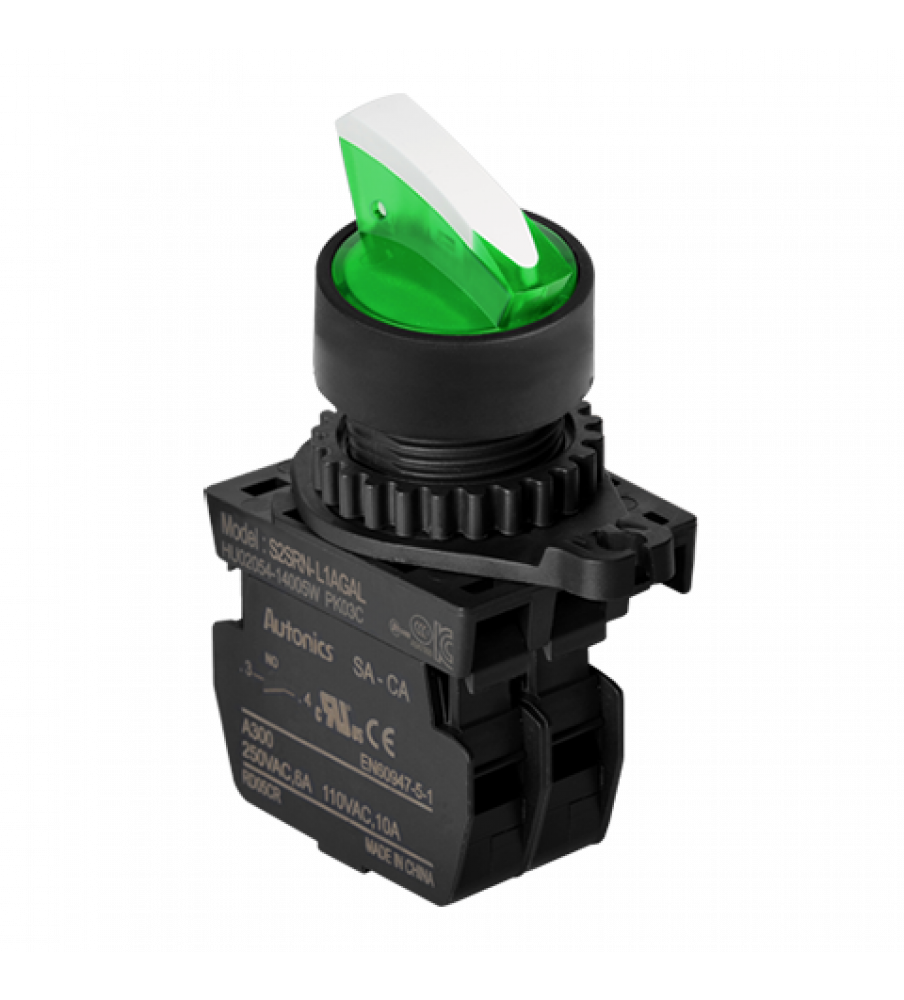 Seletor Switches ?22/25, 3 Positions, Auto Spring Return, Lever,WHITE, 1Normal Open, 1Normal Close, 110VAC/10A, 220VAC/5A
