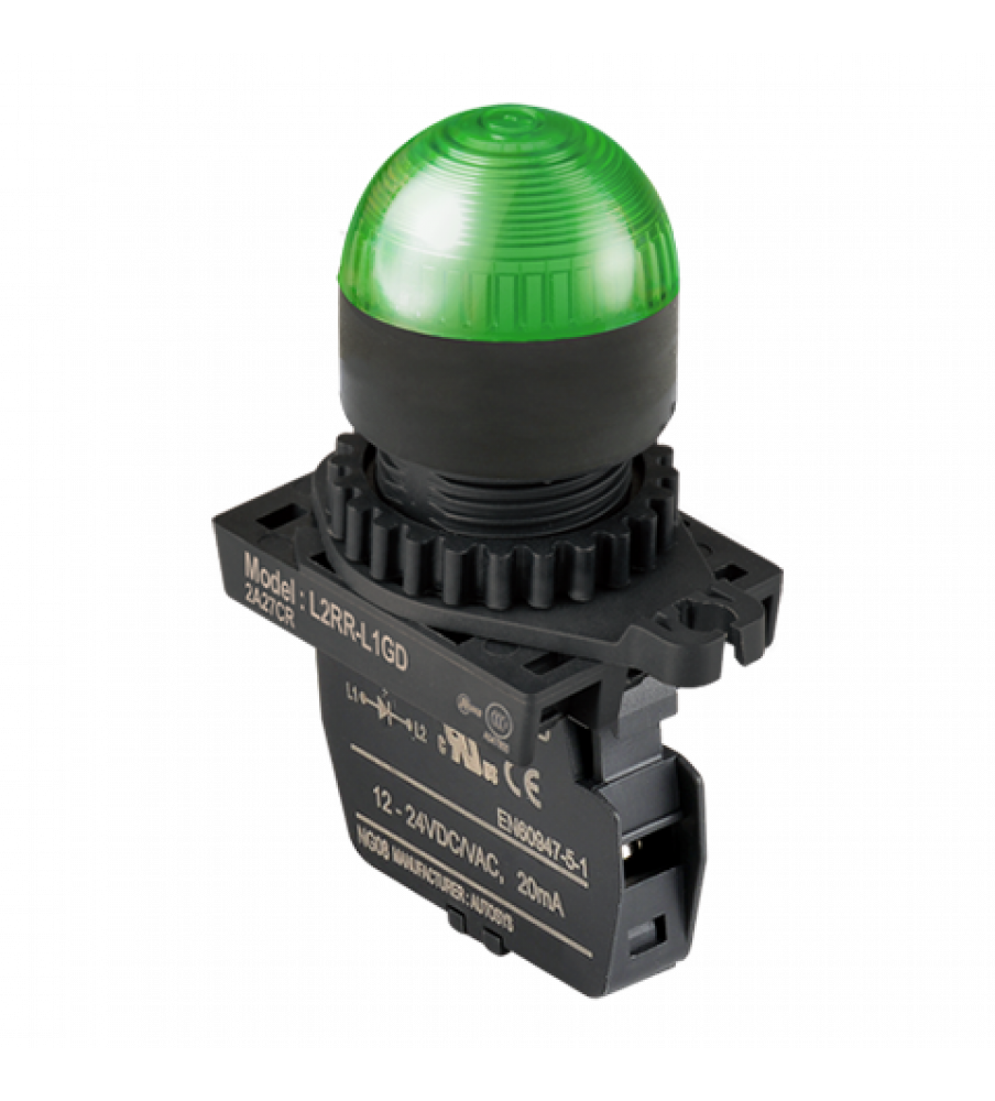 Pilot Lamp ?22/25, Green, Dome Head, LED 12-30VDC/AC