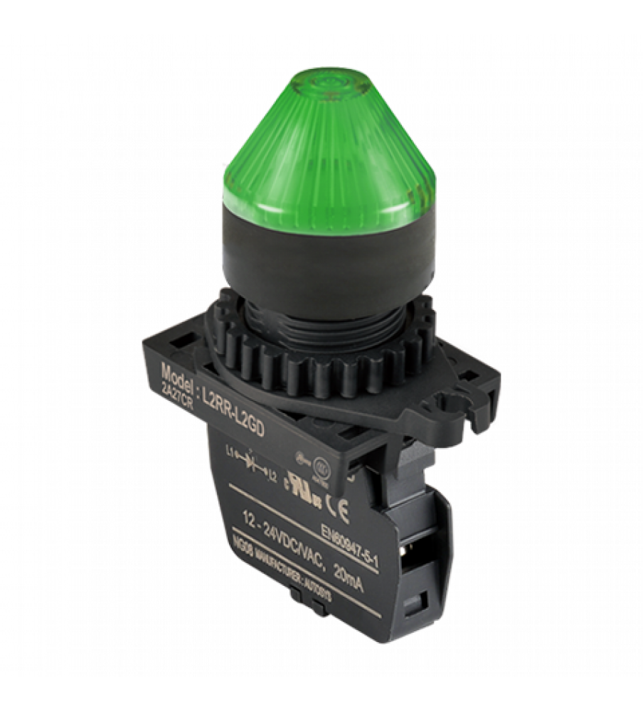 Pilot Lamp ?22/25, Green, Horn Head, LED 100-220VAC