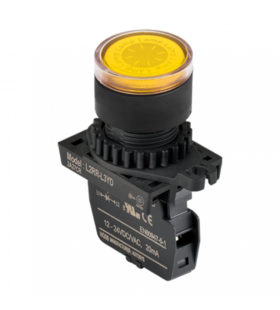Pilot Lamp ?22/25, Yellow, Flat Head, LED 100-220VAC