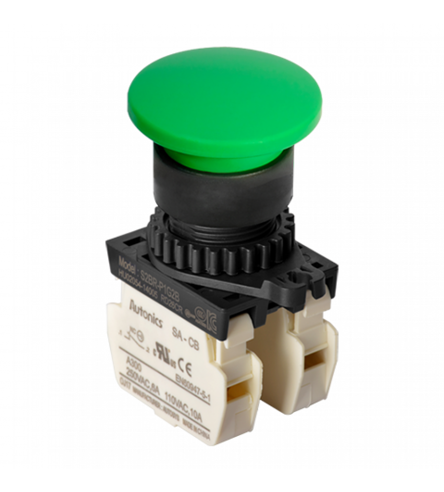 Start Push Button, Auto Spring Return, ?22/25, Green, 2 Normal Close, 110VAC/10A,220VAC/5A