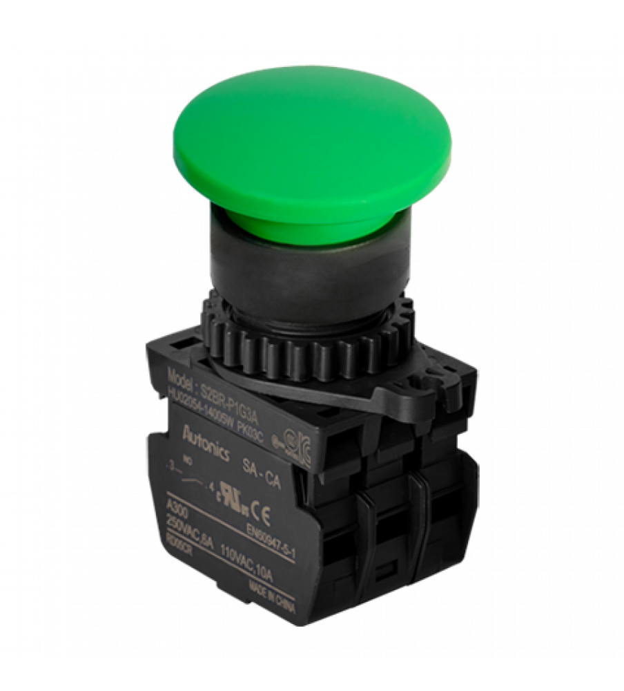 Start Push Button, Auto Spring Return, ?22/25, Green, 3 Normal Open, 110VAC/10A,220VAC/5A