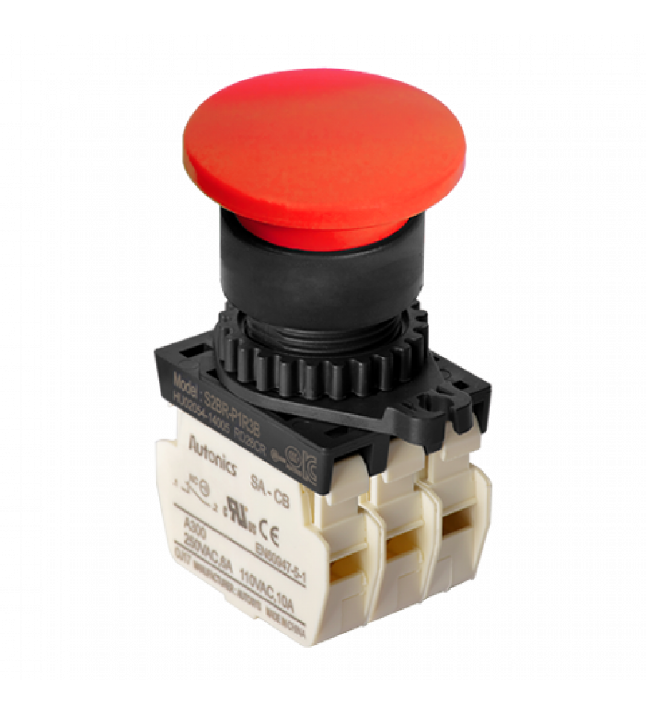 Start Push Button, Auto Spring Return, ?22/25, Red, 3 Normal Close, 110VAC/10A,220VAC/5A