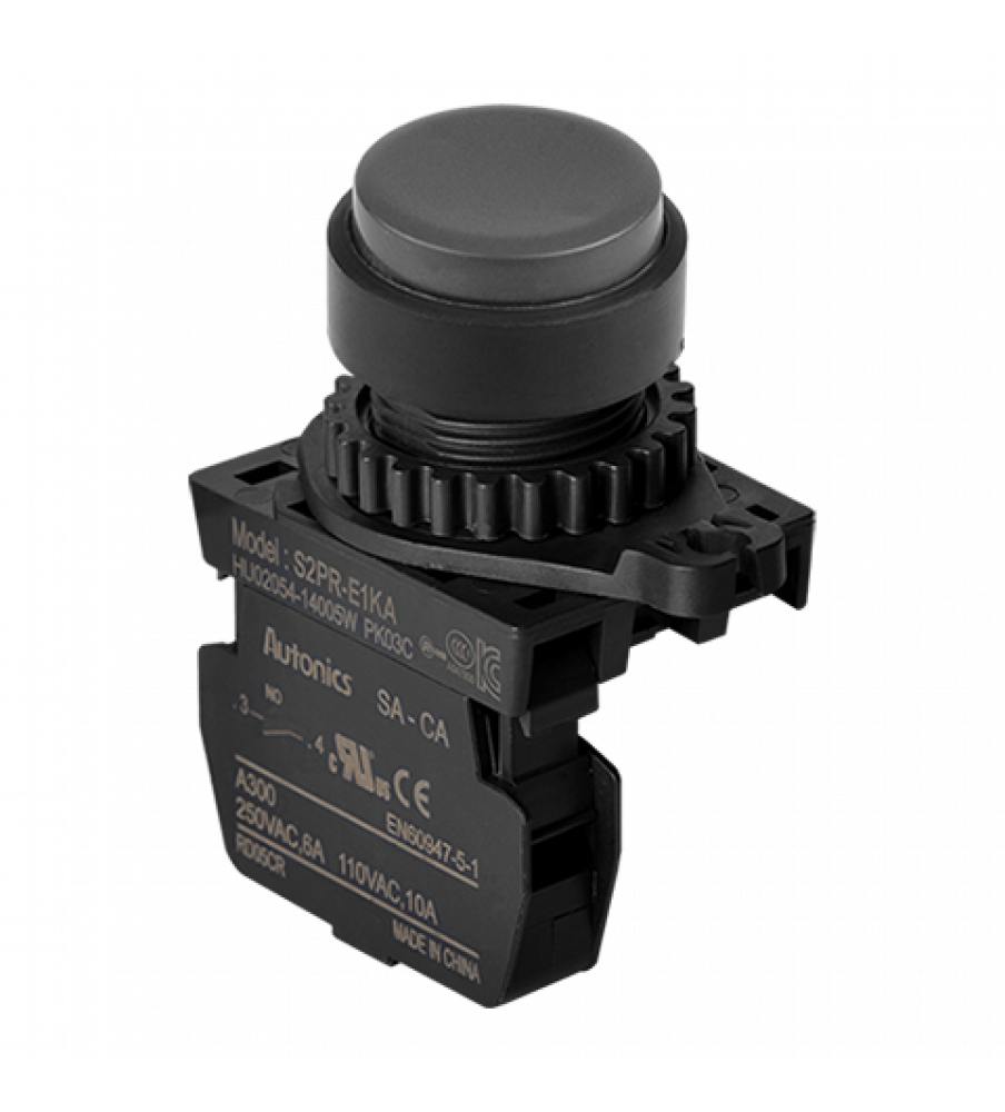 Non-Illuminated Push Button (Non-Flush), ?22/25, Raised Button, Black, Normal Open, Modular Type,110VAC/10A,220VAC/5A