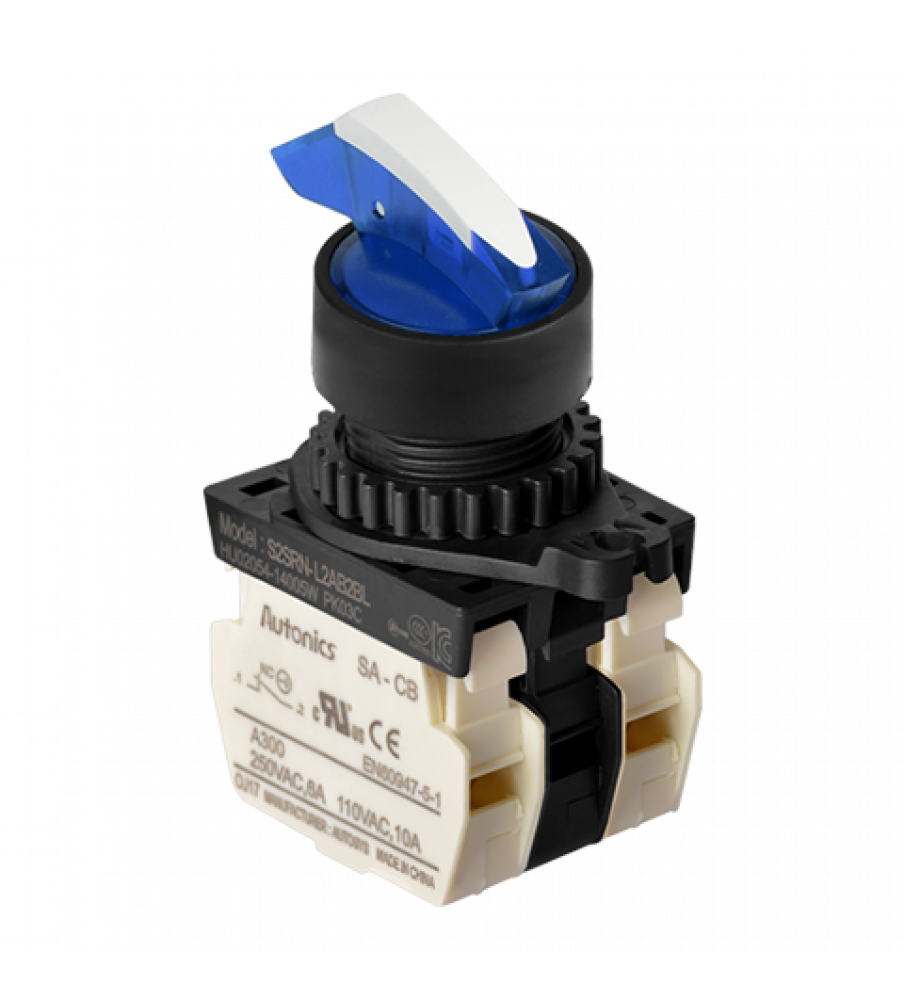 Shark Short Lever Selector Switches, Non-Flush, Illuminated, ?22/25, 3 Positions maintained Left 90? Right 90?, Yellow, Head