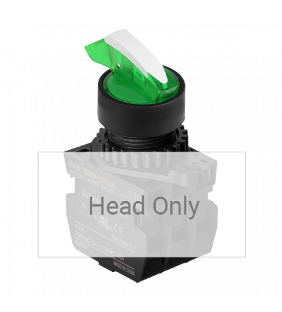 Tags: Shark Long Lever Selector Switches, Non-Flush, Illuminated, ?22/25, 2 Positions maintained Center 0? Right 90?, Green, Head