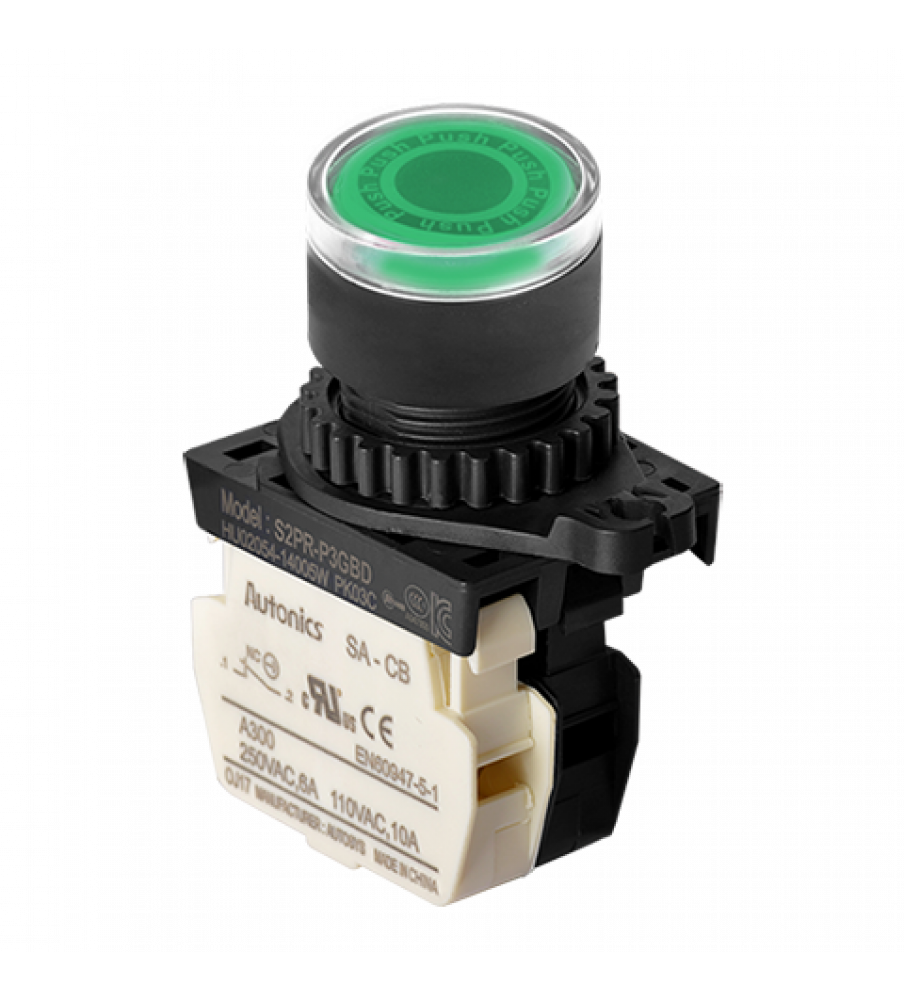 Illuminated Push Button (Non-Flush), ?22/25, Green, Normal Close, LED 12-30VDC/AC