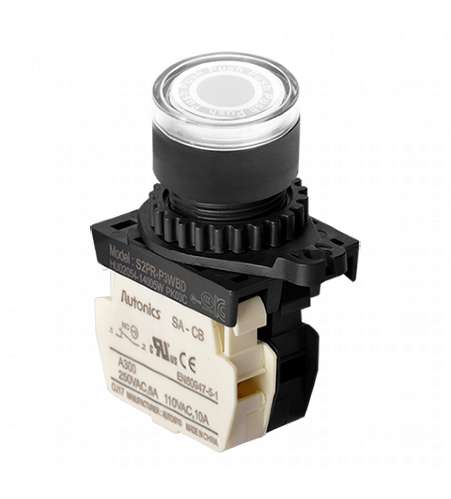 Illuminated Push Button (Non-Flush), ?22/25, White, Normal Close, LED 12-30VDC/AC