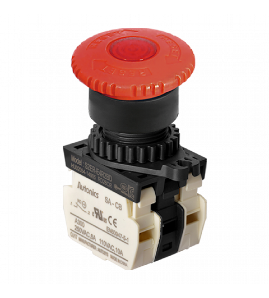 Illuminated Emergency Stops ?22/25, RED, Haed ?40, 2 Normal Close, LED 100-220VAC