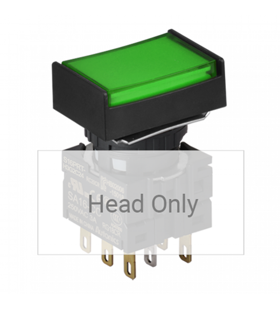 Tags: Push Button ?16 Rectangular Type, Half guard, Returned (illuminated), GREEN, Head