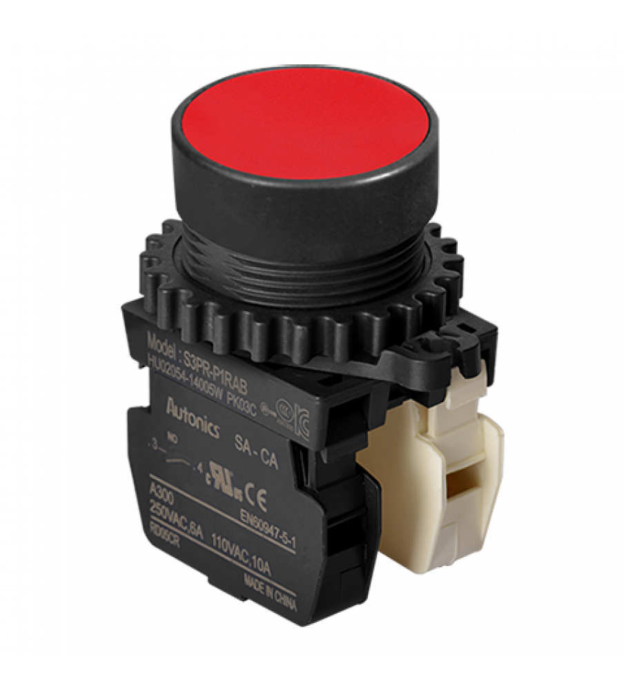 Non-Illuminated Push Button (Non-Flush), ?30, Red, 1 Normal Open, 1 Normal Close, 110VAC/10A,220VAC/5A