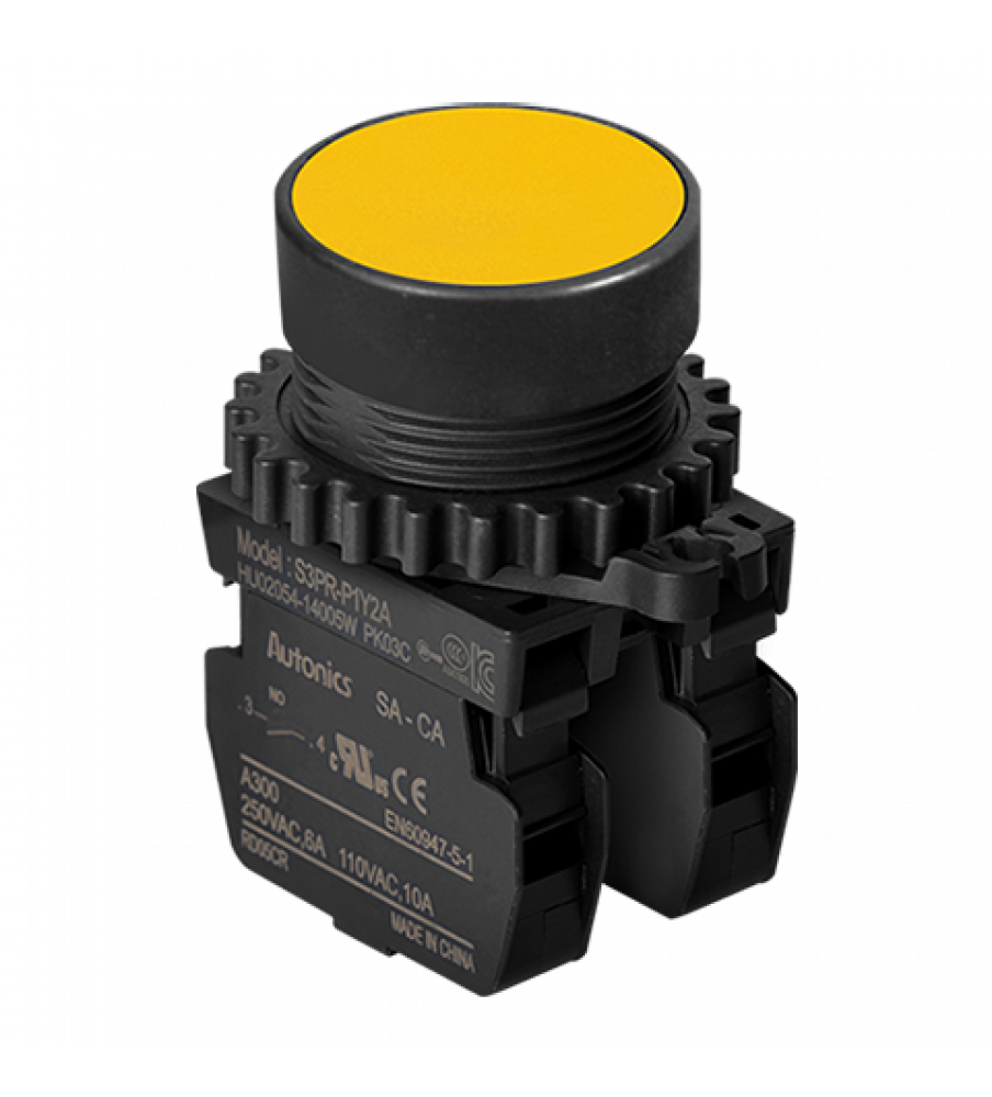 Non-Illuminated Push Button (Non-Flush), ?30, Yellow, 2 Normal Open, 110VAC/10A,220VAC/5A