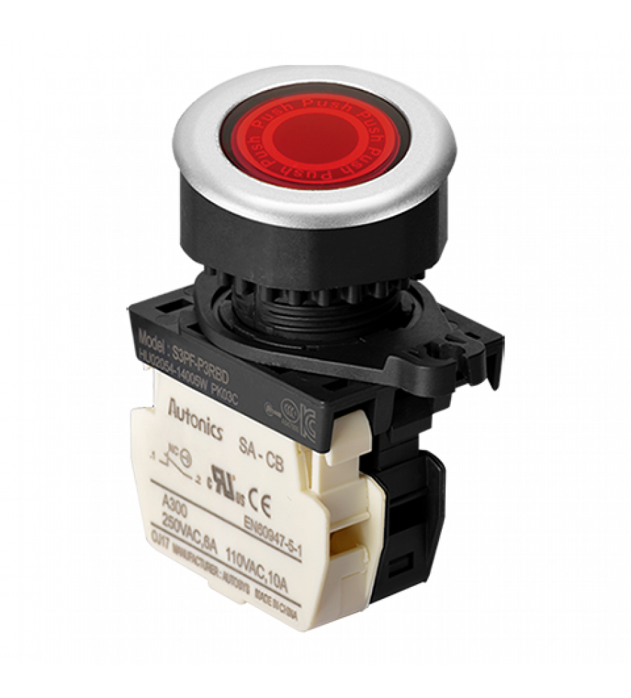 Illuminated Push Button (Flush), ?30, Red, Normal Close, LED 100-220VAC