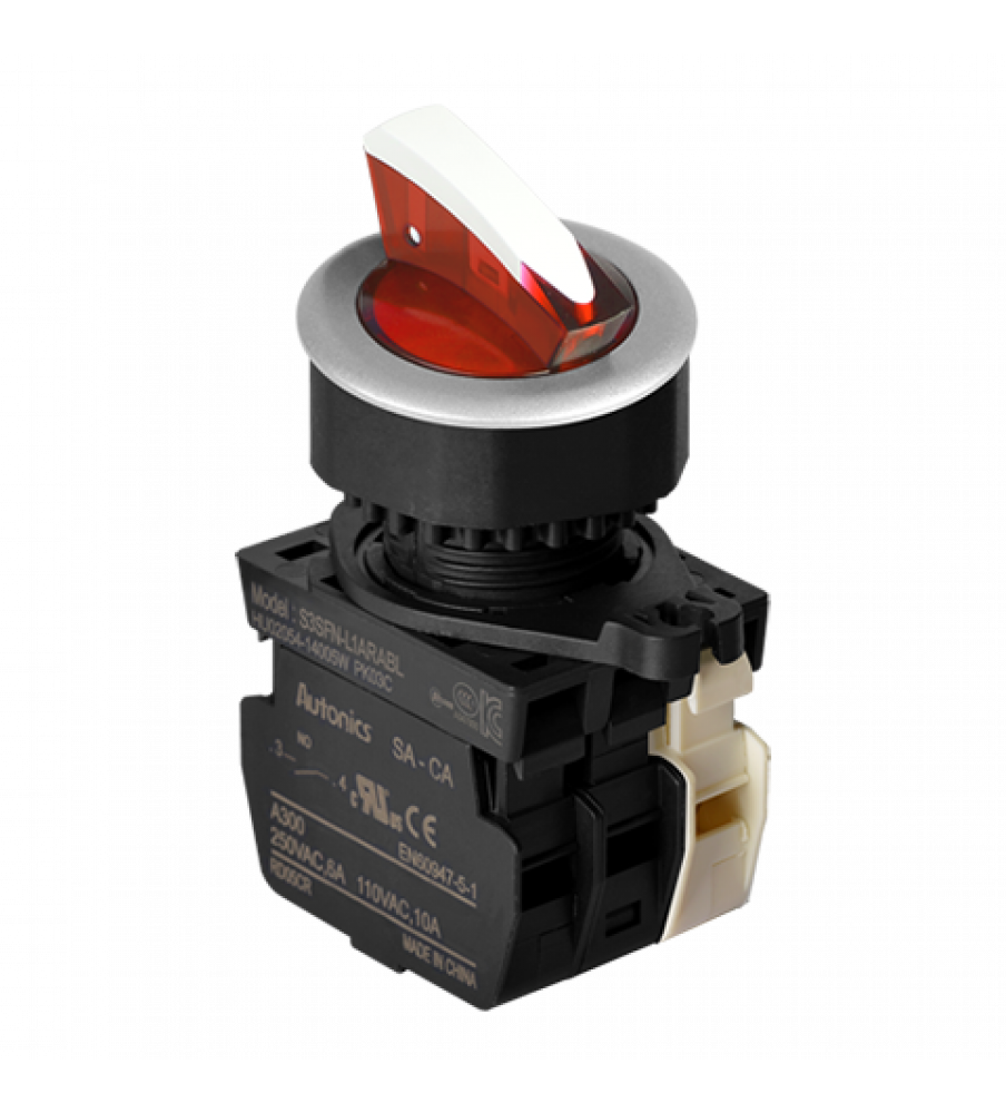 Seletor Switches ?30, 3 Positions, Fixed Position, Lever, WHITE, 2 Normal Open 110VAC/10A, 220VAC/5A
