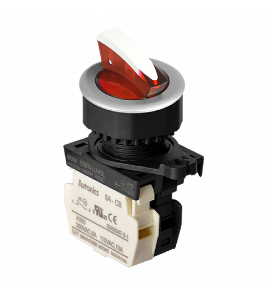 Seletor Switches ?30, 2 Positions, Fixed Position, Knob, WHITE, 1 Normal Open, 1 Normal Close, 110VAC/10A, 220VAC/5A