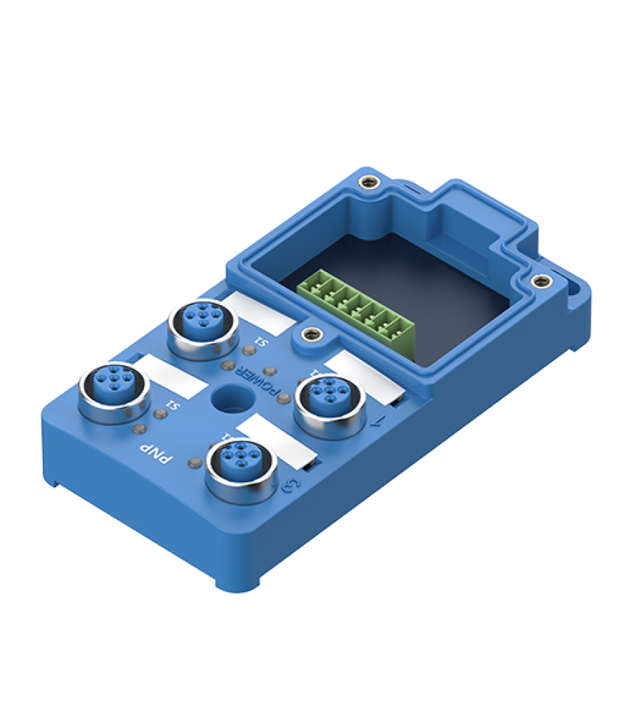 Tags: Connection Box, Pluggable Screw Termanal Type, 4 Port, M12, 5PIN, DC 3 Wire, PNP, Blue, Hood cover excluded