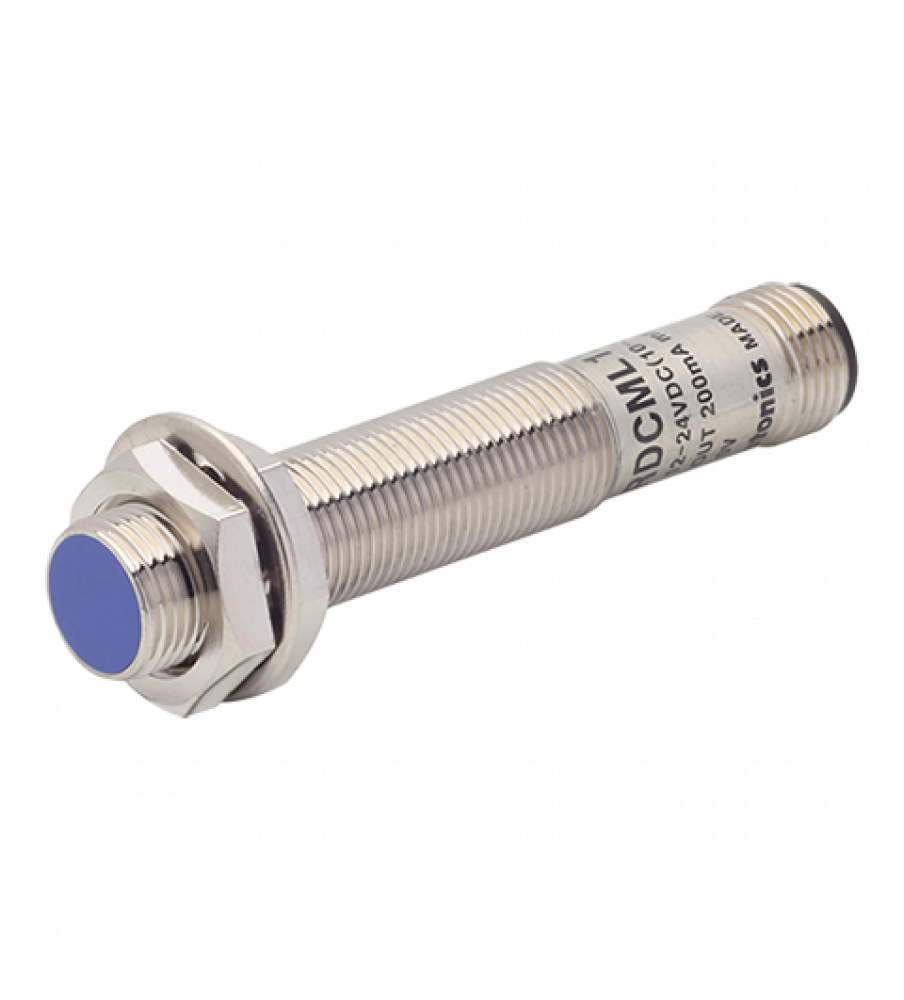 Sensor, Inductive Prox, 12mm Round Long, Connector type, Shielded, 4mm Sensing, NPN, NO, 3 Wire, 10-30 VDC