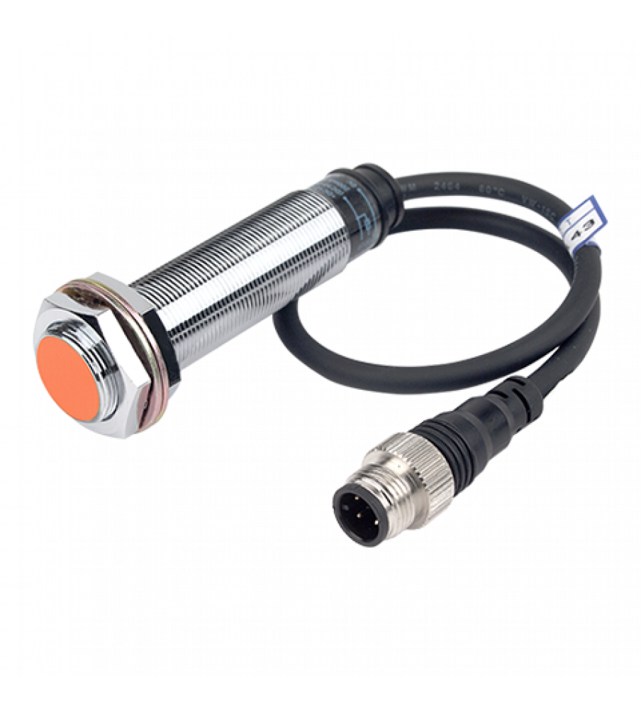Sensor, Inductive Prox, 18mm X 80mm Long, 5mm Sensing, Shielded, PNP, NO, 3 Wire, Cable&Connector, 10-30 VDC