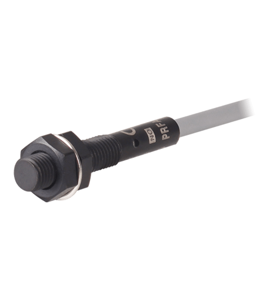 Material | Case/Nut: stainless steel 303 (SUS 303, PTFE coated), washer: stainless steel 304 (SUS 304), sensing side: stainless steel 303 (SUS 303, PTFE coated, PRFDAT12/18: 0.4mm, PRFDAT30: 0.5mm), oil resistant cable (gray): oil resistant polyvinyl chloride (PVC) |