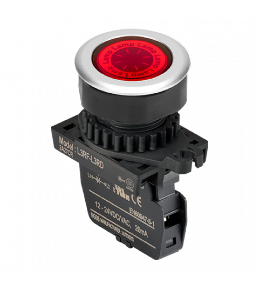 Pilot Lamp ?30, Red, Flat Head, LED 12-30VDC/AC