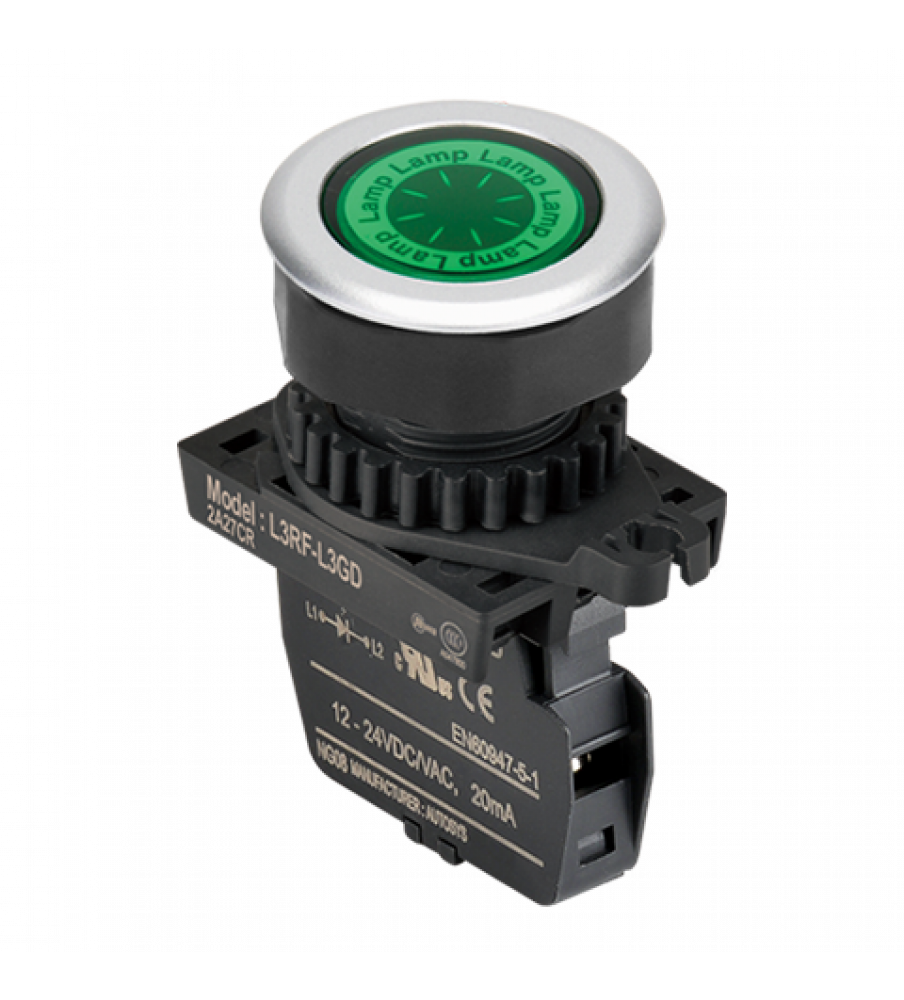 Pilot Lamp ?30, Green, Flat Head, LED 100-220VAC
