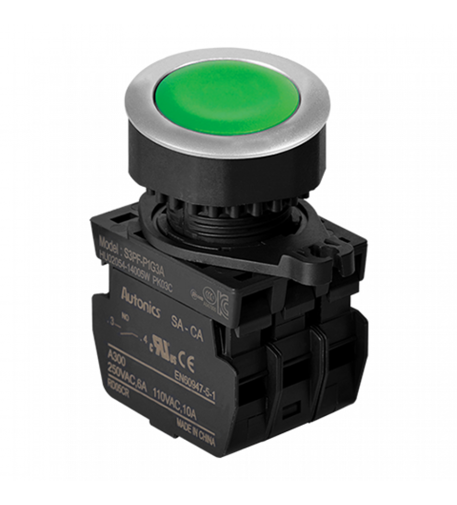 Non-Illuminated Push Button (Flush), ?30, Green, 3 Normal Open, 110VAC/10A,220VAC/5A