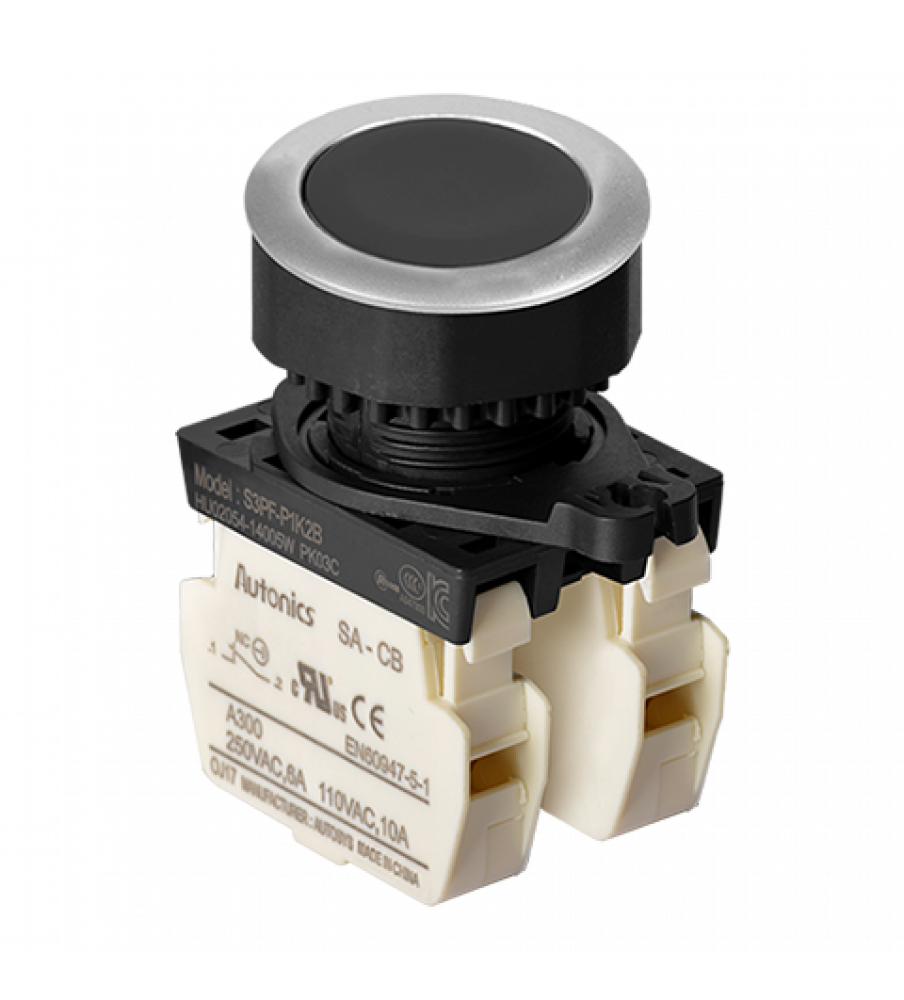 Non-Illuminated Push Button (Flush), ?30, Black, 2 Normal Close, 110VAC/10A,220VAC/5A