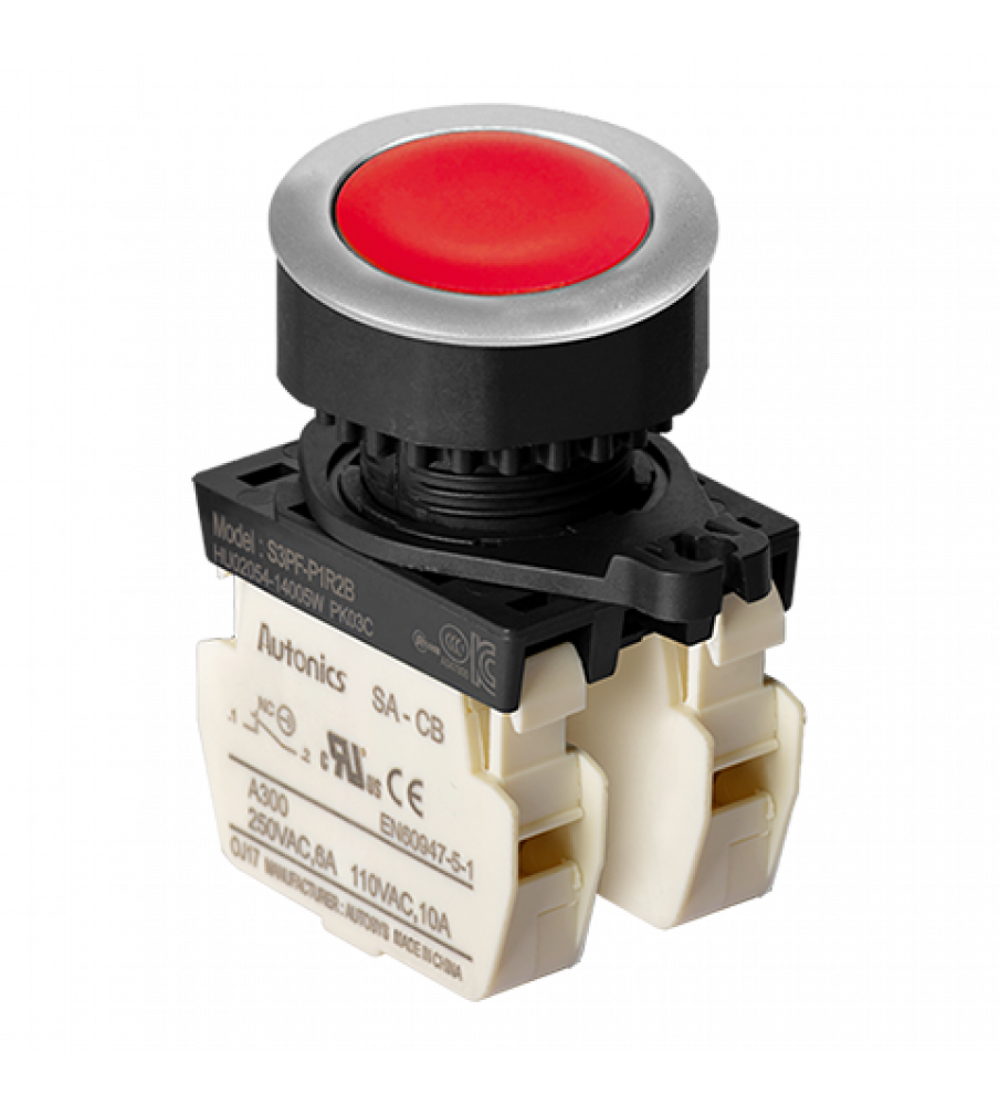 Non-Illuminated Push Button (Flush), ?30, Red, 2 Normal Close, 110VAC/10A,220VAC/5A