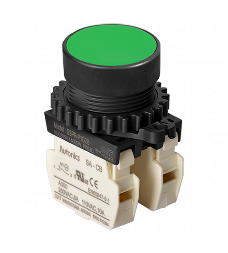 Non-Illuminated Push Button (Non-Flush), ?30, Green, 2 Normal Close, 110VAC/10A,220VAC/5A
