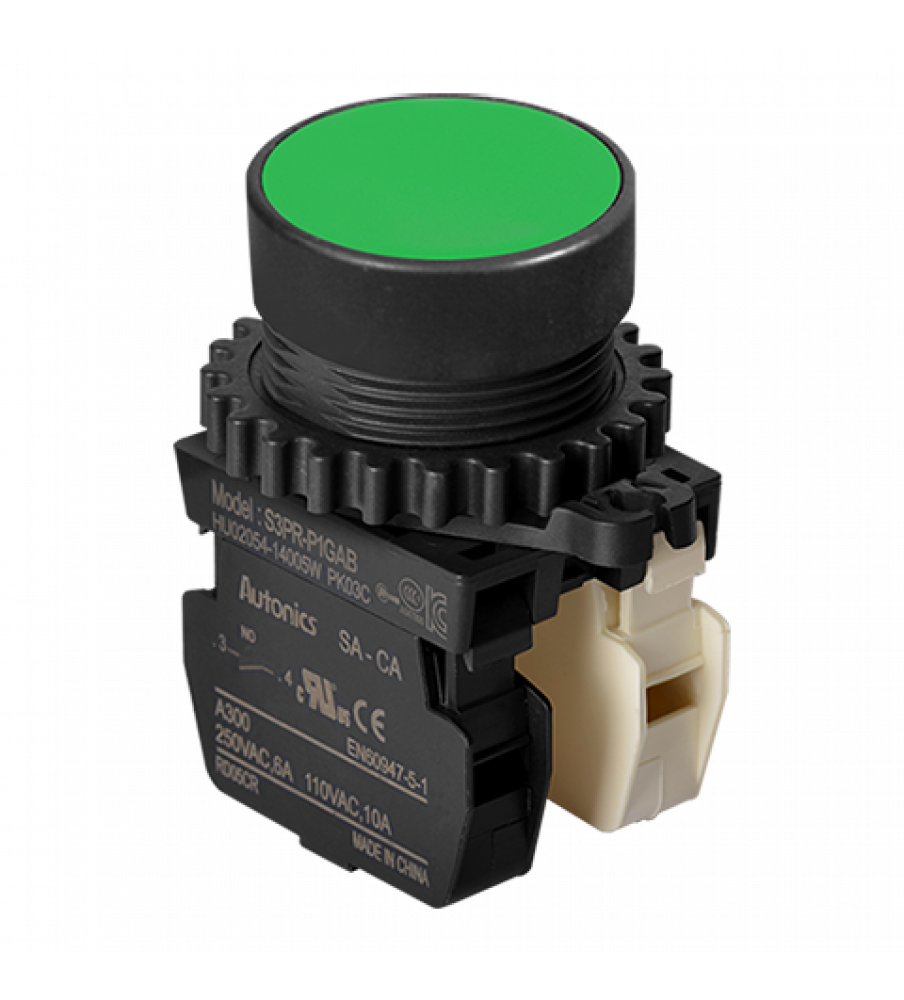 Non-Illuminated Push Button (Non-Flush), ?30, Green, 1 Normal Open, 1 Normal Close, 110VAC/10A,220VAC/5A