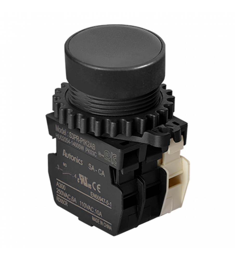 Non-Illuminated Push Button (Non-Flush), ?30, Black, 2 Normal Open, 1 Normal Close, 110VAC/10A,220VAC/5A