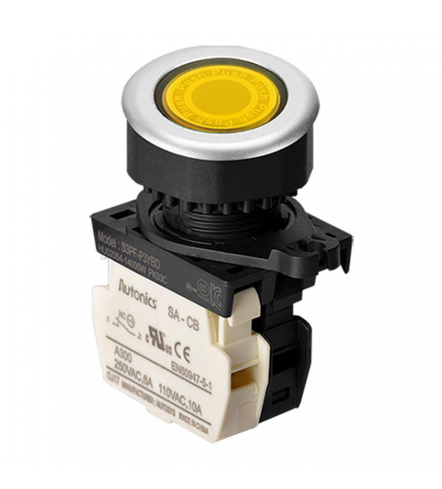 Illuminated Push Button (Flush), ?30, Yellow, Normal Close, LED 12-30VDC/AC